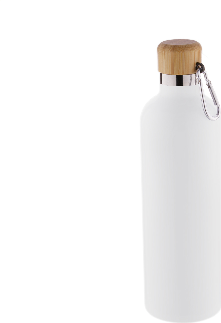 Dvoustěnná nerezová termoska s bambusovým uzávěrem a karabinkou, 500 ml.