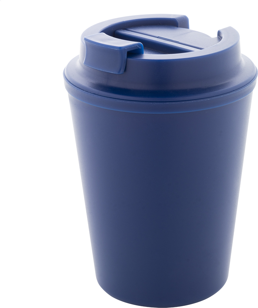 Dvoustěnný termo hrnek z recyklovaného PP plastu s víčkem na pití. 300 ml.