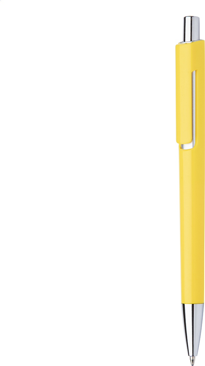 Plastové kuličkové pero s barevným tělem a chromovými částmi, s modrou náplní.