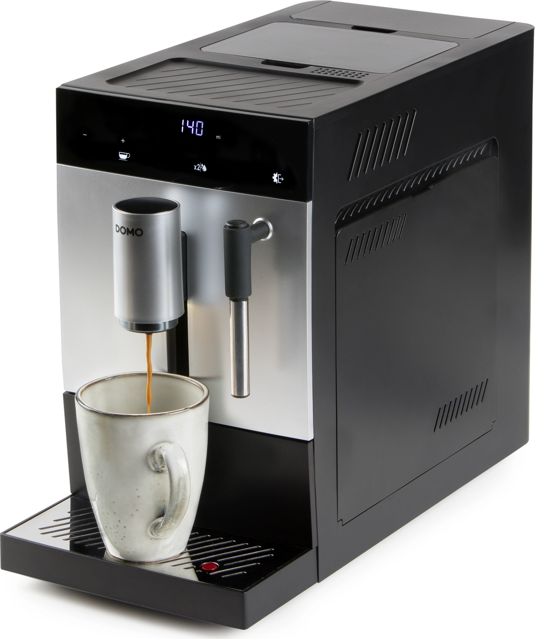 Plně automatický espresovač DOMO DO741K kombinuje snadné ovládání se stylovým, kompaktním designem, který se perfektně hodí do každé kuchyně. Jediným stisknutím tlačítka si můžete vychutnat širokou škálu kávových specialit.Výkonné italské tlakové čerpadlo ARS s tlakem 19 barů a topný systém Thermoblock zajišťují pokaždé intenzivní aroma a dokonalou cremu.Snadno si přizpůsobte kávu podle svých představ nastavením množství mleté kávy, objemu a teploty.Odnímatelná parní tryska pro mléčnou pěnu nebo napěněné mléko, ideální pro latte a cappuccino. Stroj je také vybaven intuitivním LED displejem a dotykovým ovládáním. Díky integrovanému mlýnku na kávu s nastavitelnou velikostí mletí si můžete pokaždé vychutnat kávu s jedinečnou chutí.Základní parametry Typ kávovaru: automatické espresso Pracovní tlak: 19 bar (kvalitní italské čerpadlo typu ARS) Objem vody: 1 100 ml Kapacita zásobníku na kávu: 125 g Výška šálku: až 14 cm Příkon: 1 350 WOvládání Elektronické ovládání dotykovým panelem 2 automatické programy: espresso, lungo + horká voda Parní tryska: unikátní možnost si napěnit mléko a připravit Cappuccino, Latte macchiato Volba objemu nápoje: 20 až 250 ml Volba množství mleté kávy: 7 až 12 g / porceVlastnosti Integrovaný mlýnek na kávu s nastavitelnou hrubostí mletí Vyjímatelný průhledný zásobník na vodu Výškově nastavitelná výpust kávy (7 až 14 cm) Osvětlení šálku pod výpustí kávy Z parní napěňovací trysky lze odejmout nerezový nástavec a lépe trysku čistit Snadno odnímatelný zásobník na kávové sedliny včetně odkapávací misky s nerezovou krytkou Komplet se spařovací jednotkou lze vyjmout přes bok kávovaru = snadné čištění Start a nahřátí kávovaru cca do 20 sekund od zapnutí Automatické proplachování při zapnutí po delší nečinnosti Nahřívač šálků Program automatického odvápnění kávovaru Vyjímatelná spařovací jednotkaPříslušenství v balení Kartáček na čištění špařovací jednotky Jemný kartáček na čištění trysky Sada náhradních těsnicích kroužkůFunkce předpaření kávyDo namleté kávy ve spařovací jednotce se napustí malé množství horké vody. Horká voda způsobí, že dávka kávy lehce nabude a tím se zvýší tlak v celé spařovací jednotce.Vyšší tlak při propaření = lepší chuťovou extrakci a lepší aroma.Rozměry přístroje (š x h x v): 19 x 39,5 x 31,7cmHmotnost přístroje: 7,5 kgDélka přívodního kabelu: 105 cmRozměry balení (š x h x v): 26 x 46 x 40 cmHmotnost balení: 8,85 kg