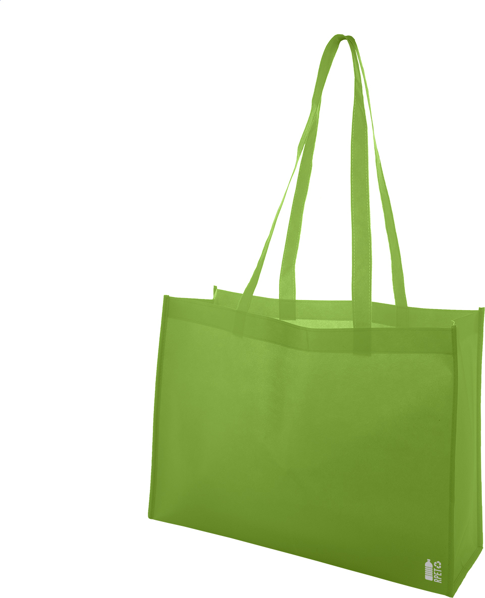 Nákupní taška z netkané textilie RPET s klínem a dlouhými uchy, 80 g/m². S výrazným logem RPET.