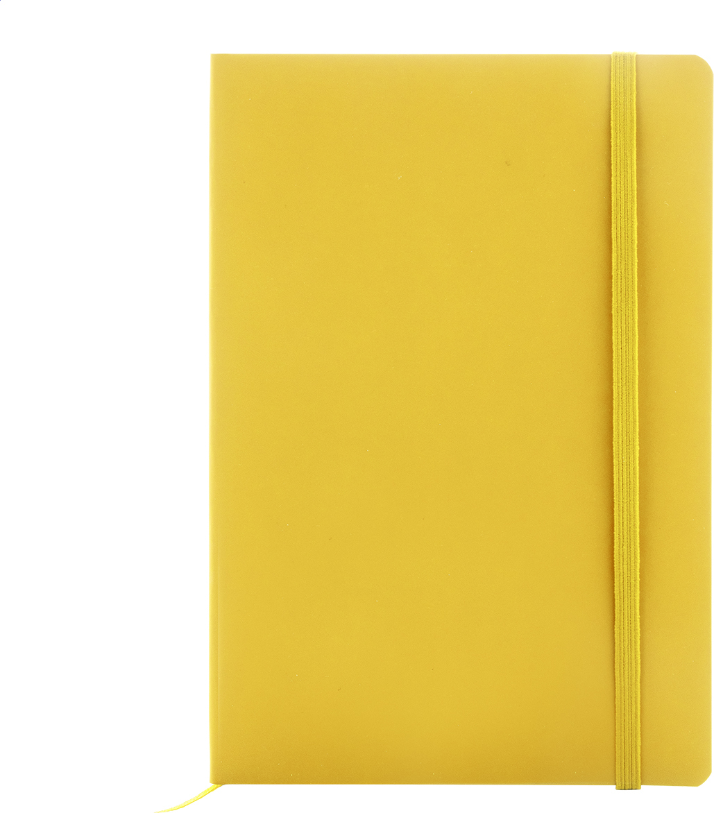 Blok A5 z recyklované PU kůže s měkkou vazbou s 80 linkovanými listy z recyklovaného papíru. Se záložkou v odpovídající barvě a gumičkou.