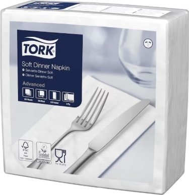 Vysoce kvalitní a měkké papírové ubrousky Tork večeře, v rozměru 40x40cm, skládané na 1/8
