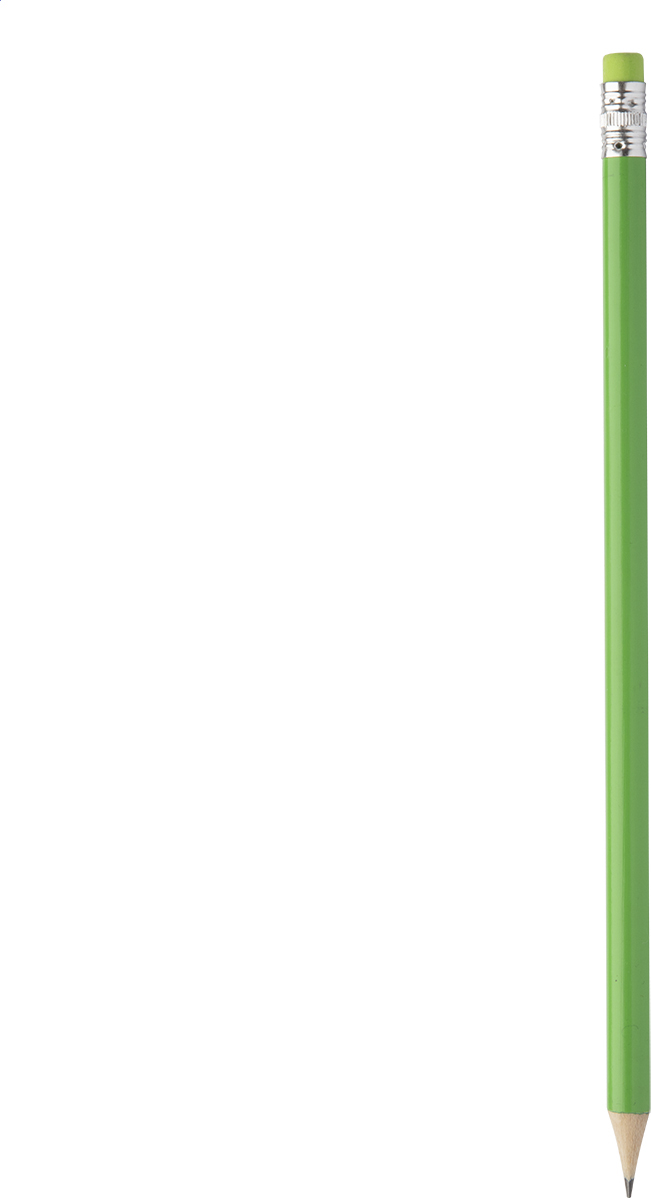Dřevěná tužka se stejně barevnou gumou, ořezaná.