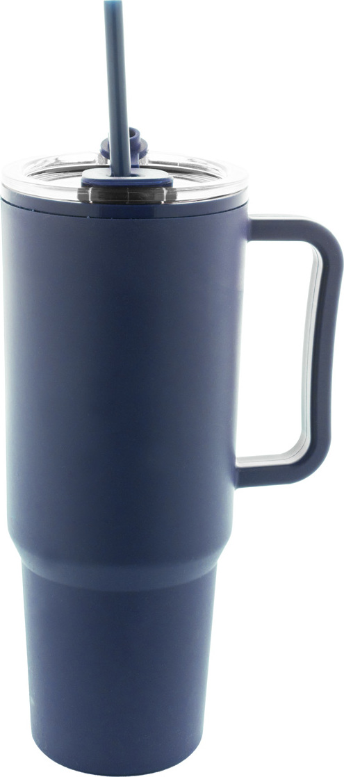 Dvoustěnný termo hrnek izolovaný PP plastem s víčkem na pití a brčkem. 1100 ml.