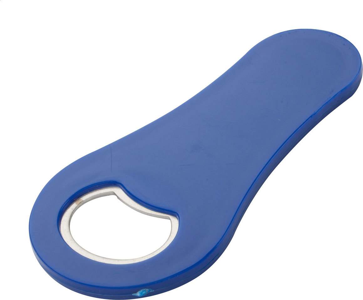 Plastový otvírak na pivní lahve s magnetem.