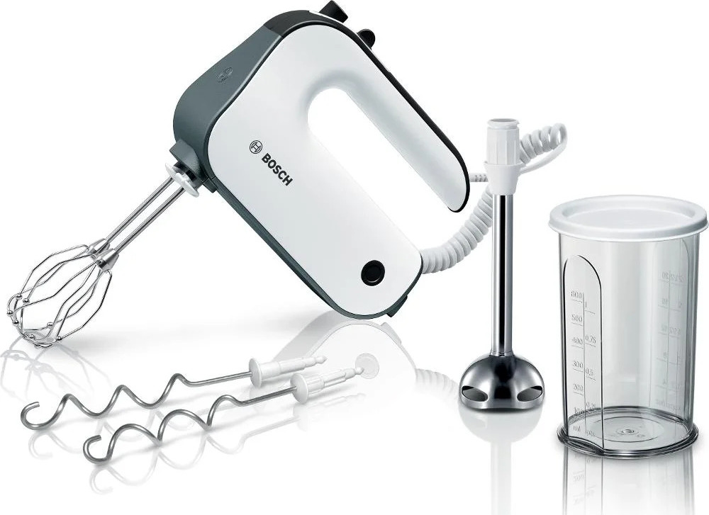 Ruční šlehačBosch MF Q4 850W WhitePN MFQ49700Výkon 850 W5 rychlostí + turboSpirálový kabelTichý provoz2 metly FineCreamer2 hákyNerez mixovací nohaMixovací nádoba s víkemSoftTouch povrchBarva bílá