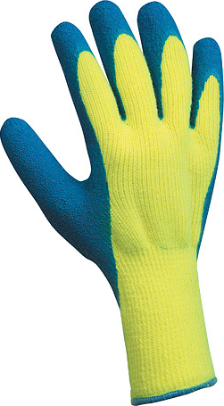 - pletené, bezešvé, akrylové rukavice - polomáčené v přírodním latexu - zdrsněná dlaň
