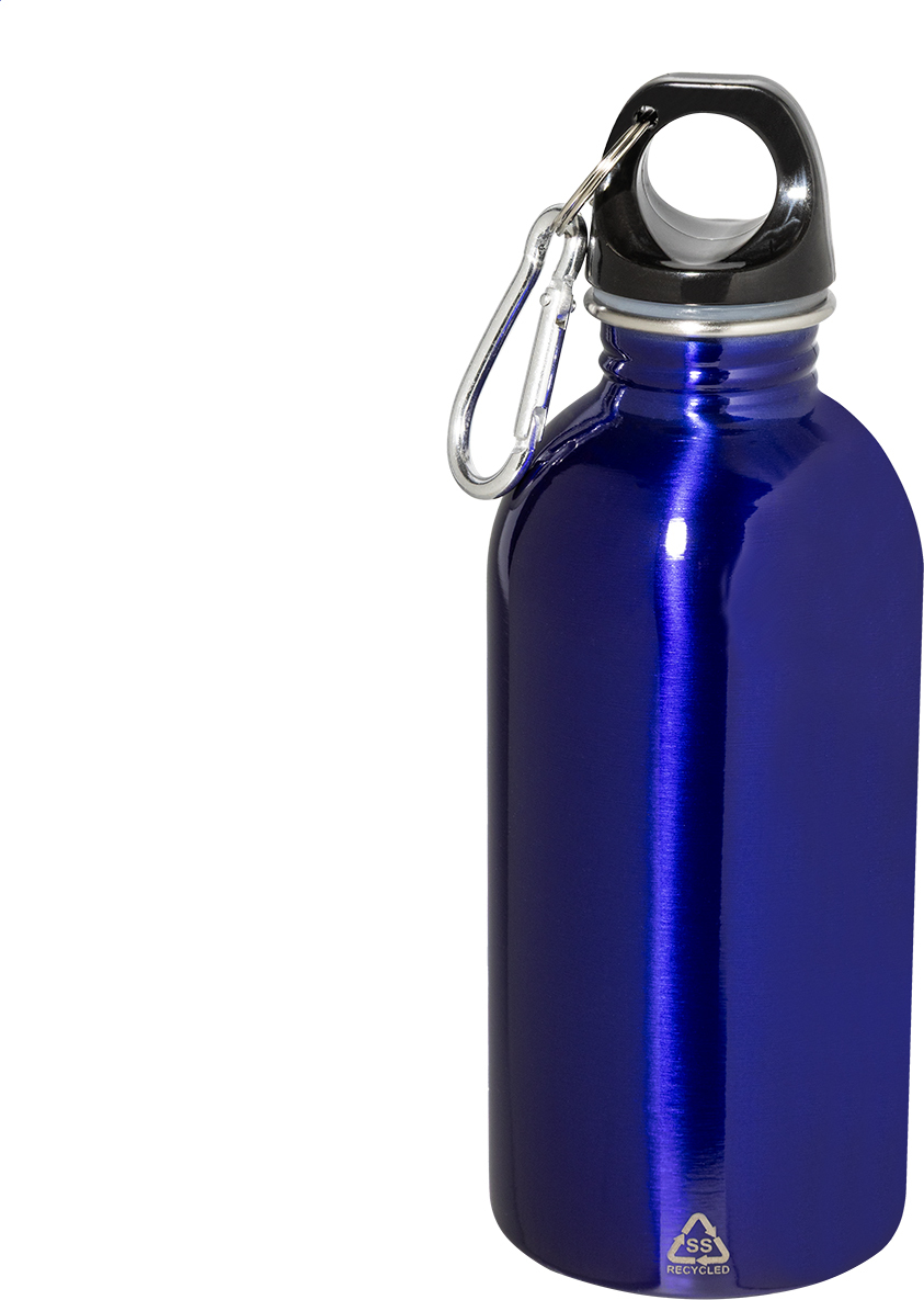 Láhev z recyklované nerezové oceli s hliníkovou karabinou, 400 ml.