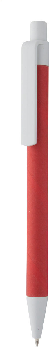 Kuličkové pero vyrobené z recyklovaného papíru a bílého plastu, s modrou náplní.