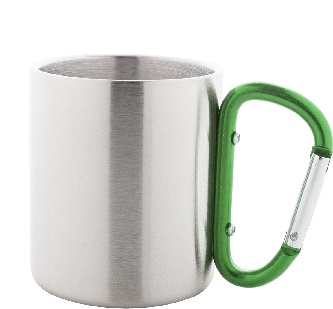 Nerezový hrnek s barevným karabinkovým uchem, 200 ml.