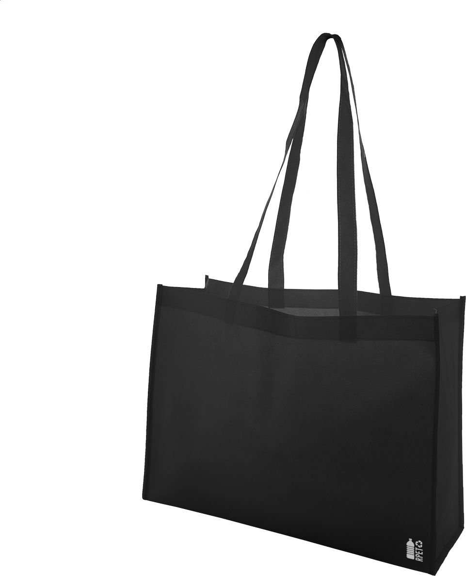 Nákupní taška z netkané textilie RPET s klínem a dlouhými uchy, 80 g/m². S výrazným logem RPET.