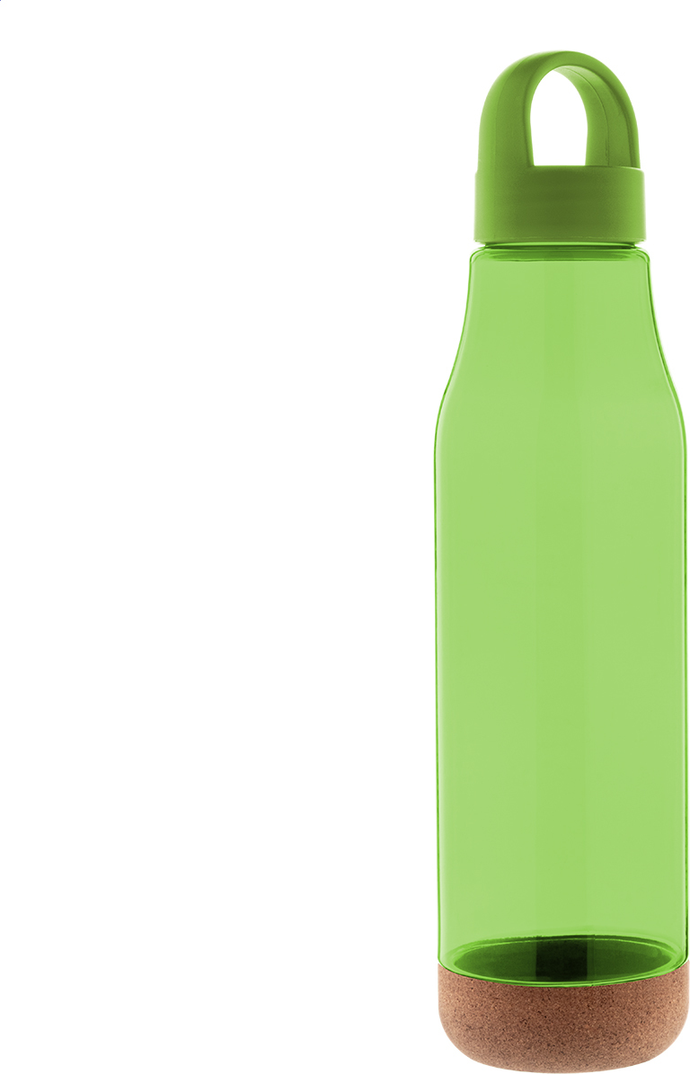 RPET láhev s přírodním korkem a PP plastovým víkem. 720 ml. Nevhodné pro sycené nápoje.
