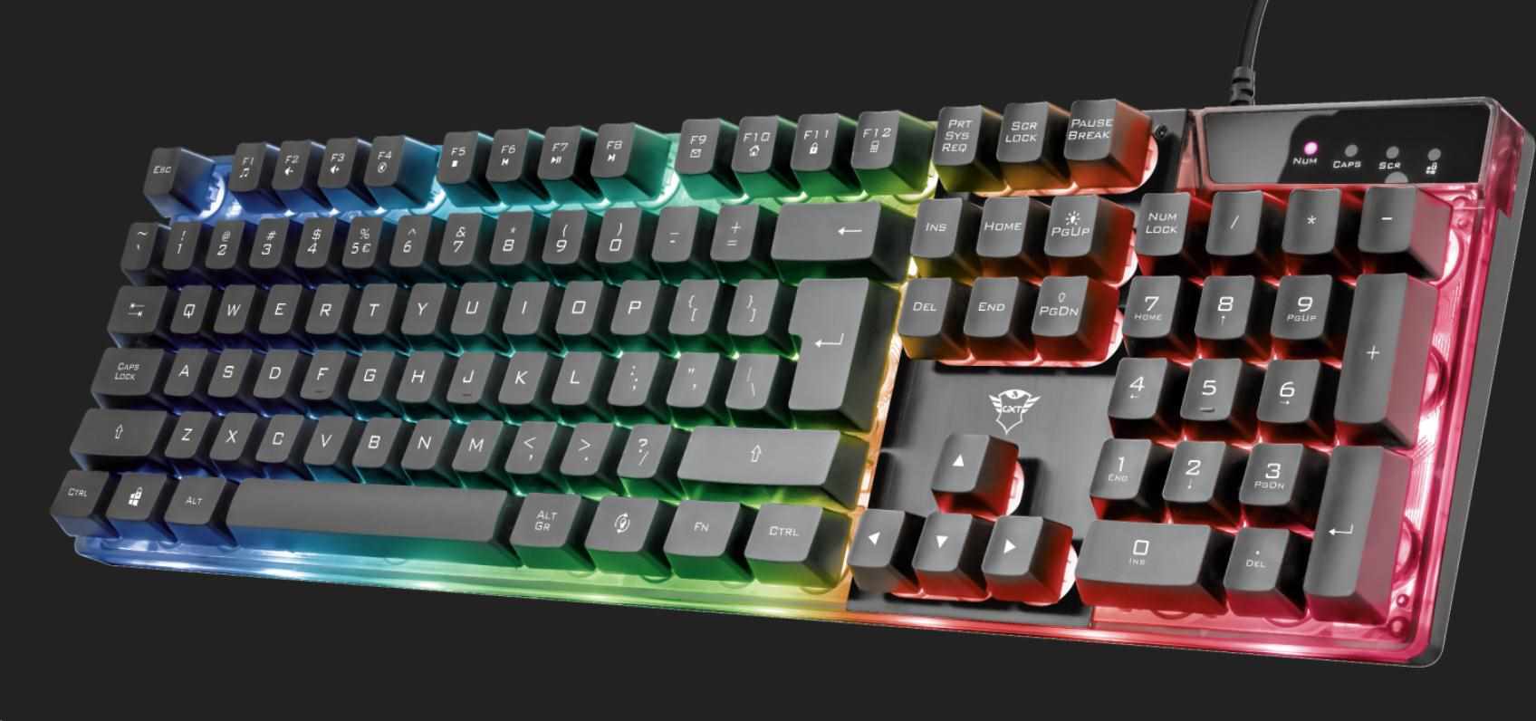 Trust GXT 835 Azor Illuminated Gaming Keyboard. Herní klávesnice plné velikosti s podsvícením. Klávesnice Trust GXT Azor osvětluje vaši cestu k digitálnímu vítězství úžasnými barvami. A díky technologii anti-ghosting a přepínači herních režimů zvládne klávesnice s rozložením v plné velikosti i vaše nejrychlejší hry. Rozjasněte své herní prostředí působivými LED světly. Je možné si vybrat ze tří různých režimů, všechny s nastavitelným jasem, takže najdete ideální nastavení, které odpovídá intenzitě vašich zápasů.Klíčové vlastnosti*Rozložení klávesnice v plné velikosti*3 kombinované barevné režimy LED s nastavitelným jasem*Anti-Ghosting: až 8 současných stisknutí kláves*Přepínač herního režimu; přímo deaktivovat klávesu Windows*Protiskluzové gumové nožičky a výškově nastavitelné 2 stupně*12 multimediálních funkčních klávesTechnické parametry*Layout: CZ/SK*Typ připojení: kabelové*Délka kabelu: 180 cm*Typ konektoru: USB-A*Podsvícení: ano*Barvy podsvícení: Duha*Rozměry: 40 x 438 x 125 mm*Hmotnost: 621 gOdkaz na web výrobce: https://www.trust.com/en/product/23651-gxt-835-azor-illuminated-gaming-keyboard