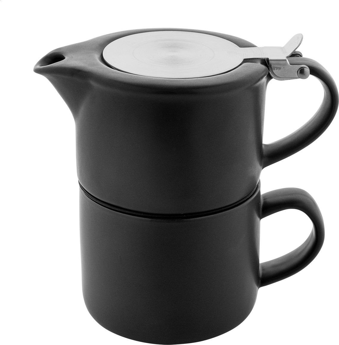 Vysoce kvalitní keramická čajová sada s matným povrchem. Včetně konvice na čaj (430 ml) s víčkem z nerezové oceli a sítkem na čaj, navržená pro úhledné stohování na odpovídající hrnek (400 ml). V krabičce z kraftového papíru.