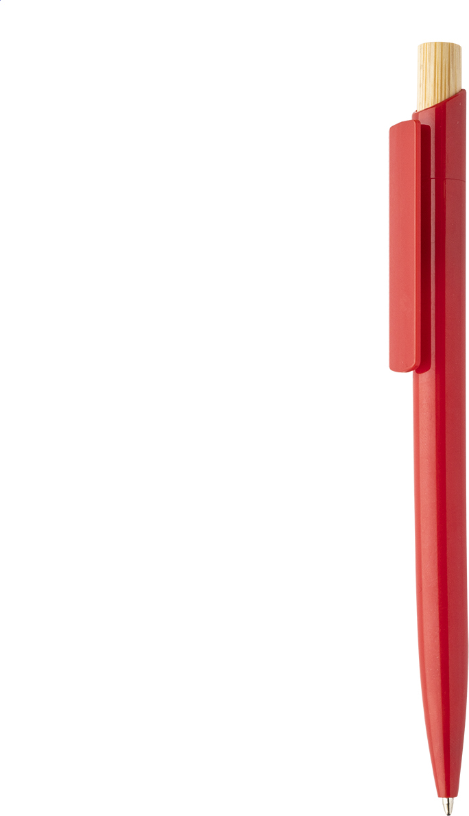 Kuličkové pero z recyklovaného ABS plastu s bambusovým tlačítkem. S modrou náplní.