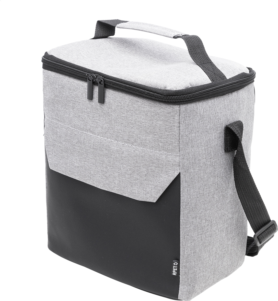 Chladicí taška na zip z RPET s detaily potaženými PU a PEVA vycpávkou. S rukojetí, nastavitelným ramenním popruhem a malou přední kapsou. 600D RPET polyester s výrazným štítkem RPET.