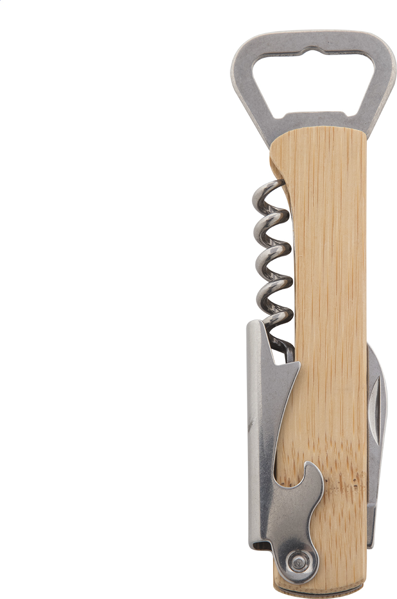 Otvírák a vývrtka z nerezové oceli s bambusovou rukojetí.