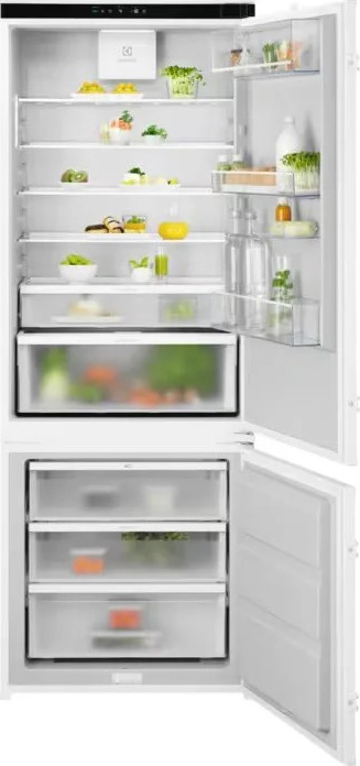 Centrum zdravého stravováníChladnička s mrazničkou 700 GreenZone má utěsněnou zásuvku, kde je vlhkost udržována na vyvážené úrovni, řízením míry kondenzace, což pomáhá předcházet zkažení potravin. Správnou úrovní vlhkosti se tak zachovává až 95 % vitamínů.*GreenZone pomáhá zachovat výživné látky v ovoci a zeleniněGreenZone je ideální úložná zásuvka, která eliminuje přebytečnou vlhkost a zároveň zachovává její správnou úroveň pro vaši zeleninu. Díky správné úrovni vlhkosti se zachová až 95 % vitamínů i po 11 dnech.*Průlomová unikátní chladnička s mrazničkou z recyklovaných plastů*S hrdostí představujeme naši chladničku s mrazničkou s použitím vnitřního materiálu ze 70 % recyklovaného plastu. Plast z vyřazených chladniček se používá k výrobě nových chladniček, což pomáhá snižovat množství odpadu díky recyklaci materiálu.MaxiSpace – vyšší, širší, o 45 % větší úložná kapacita*Díky MaxiSpace získáte o 45 % větší kapacitu, než nabízí standardní chladnička s mrazničkou.* Je vyšší a širší než běžné chladničky a poskytuje dostatek prostoru pro spoustu potravin. TwinTech No Frost: Chrání potraviny, zabraňuje tvorbě námrazyTwinTech® No Frost využívá pokročilý systém duálního chlazení. Tato technologie zajišťuje, že mraznička zůstává bez námrazy a chladnička si udržuje optimální vlhkost, která zabraňuje vysychání potravin.Stabilní teplota díky technologii DynamicAirDynamicAir zajišťuje udržování stabilní teploty uvnitř vaší chladničky. Funguje na základě cirkulace chladného vzduchu, který chrání vaše potraviny před ohřátím i při otevření dveří.Specifikace Určeno k plné vestavbě se spřaženými dveřmi Čistá kapacita mrazáku : 89 (l) Čistá kapacita chladničky : 287 (l) Automatické rozmrazování mrazící přihrádky - TwinTech NoFrost Automatické odmrazování Ventilátor pro cirkulaci vzduchu zajišťuje rovnoměrnou teplotu Funkce rychlého chlazení zajišťuje rychlé dosažení požadované teploty Funkce rychlého zmrazení Zvukový a vizuální alarm vysoké teploty Zvukové a vizuální upozornění na otevřená dvířka Oddělené ovládání mrazící a chladící části Osvětlení chladničky: Luna – 1 top and 2 sides Umístění dveřních zámků: Vpravo, zaměnitelné doleva Rozměry spotřebiče VxŠxH (mm): 1884 x 696 x 549 Vestavné rozměry (mm): 1894 x 710 x 560 Technické specifikaceMaximální teplota okolí, pro kterou je spotřebič vhodný (°C): 43Celkový objem (lit.): 376Doporučené nastavení teploty pro optimalizované uchovávání potravin (°C): -18Třída energetické účinnosti: EÚroveň emisí hluku šířeného vzduchem v dB(A) re 1pW: 35Akumulační doba - doba po kterou se při výpadku provozu udrží dostatečně nízká teplota aby nedošlo k tání (h): 15Klimatická třída: SN-N-ST-TInstalace: Vestavná se spřaženými dveřmiRozměry (mm): 1884x696x549Prostor pro instalaci VxŠxH (mm): 1894x710x560Ovládání: Dotykové ovládáníBarva: BíláOsvětlení chladničky: Luna – 1 top and 2 sidesZavěšení dvířek: Vpravo, zaměnitelné dolevaTechnologie zchlazování: No FrostOdmrazování mrazničky: AutomatickéČistý objem chladničky/mrazničky (l): 287/89Odmrazování chladničky: AutomatickéPočet termostatů: 2Emisní třída hluku šířeného vzduchem: BDélka přívodního kabelu (m): 2.4Napájecí napětí (V): 220-240Příkon (W): 120EAN kód produktu: 7333394026749Roční spotřeba energie (v kWh/rok): 247Zmrazovací kapacita (kg/24h): 10.5