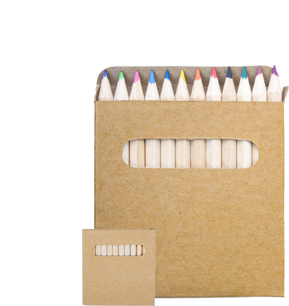 Dřevěné pastelky (12 ks) v papírové krabičce.