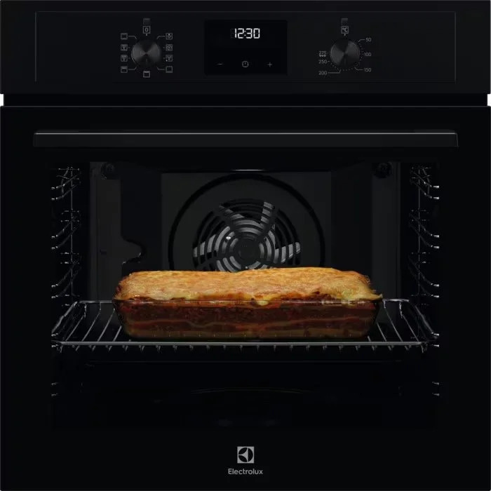 SpecifikaceVestavná troubaTopné kruhové těleso, podporující multifunkci troubyFunkce trouby: Spodní ohřev, Gril, Gril + horní ohřev + ventilátor, světlo, Kruhové těleso + ventilátor, Horní + spodní ohřev, Ventilátor s grilem (infrapečení), Ventilátor s grilem (infrapečení) + spodní ohřev, vrchní ohřev + grilMožnost pečení na 3 úrovních najednouZasunovací ovladačeMožnost elektronického nastavení trouby: akustický signál, trvání, minutka, časHalogenové osvětleníČištění: hladký smalt pro snadné čištěníSnadno omyvatelné dveřeChladící ventilátor: Chladící ventilátor se spouští automaticky, když je spuštěna trouba. Ochlazuje elektronické komponenty a tím je chrání.Plechy dodávané s troubou: 1 odkapávací pekáč šedý smaltRošty dodávané s troubou: 1 běžný rošt chromovanýVýkonFunkce trouby: Spodní ohřev, Tradiční pečení, Rozmrazování, Rychlý gril, Gril, Světlo, Vlhké horkovzdušné pečení, Pečení pizzy, Pravé horkovzdušné pečení, Turbo grilWi-Fi připojení: NeČasovač: SETVnitřní objem (l): 72Čištění trouby: Hladký smalt pro snadné čištěníTyp ovládání trouby: Zasunovací ovladače leskléMax výkon grilu (W): 2700Max výkon trouby (W): 2790Teplotní rozsah: 50°C - 275°CPlocha největšího plechu (cm2): 1424Hlučnost (dB): 53Teplota povrchu dveří max. K (podle EN30 nebo 60335-1): 40Počet dutin: 1Systém tepelné úpravy: Ventilátor + kruhové topné tělesoInstalaceProstor pro instalaci VxŠxH (mm): 590x560x550Max. příkon (W): 2790Rozměry (mm): 594x594x568Hmotnost včetně obalu (kg): 29.2Hmotnost (kg): 28.2Délka přívodního kabelu (m): 1.6Zakončení: SchukoNapájecí napětí (V): 230Požad. jištění (A): 16EnergieTřída energetické účinnosti: AEnergetická třída: 95.3Spotřeba energie se standardním zatížením (kWh/cyklus): 0.93Spotřeba energie se standardním zatížením, režim s ventilátorem (kWh/cyklus): 0.81Výkon žárovky osvětlení: 40Spotřeba trouby: ElektrickáOstatníProduktové číslo (PNC): 949 496 355Barva: Čistá černáParní funkce: NeOsvětlení trouby: 1, Zadní / boční halogenTyp výrobku: Vestavná pečící troubaVýbava trouby - plechy: 1 odkapávací pekáč šedý smaltVýbava trouby - rošty: 1 běžný rošt chromovanýVýsuvy ve výbavě: kolejnice pro rošt Easy EntryMateriál dutin / Vnitřní materiál: Šedý smaltKód produktu (PNC): 949 496 355EAN kód produktu: 7332543997152Elektronické funkce: akustický signál, trvání, minutka, časPřívodní kabel: 1.6 m se zakončením