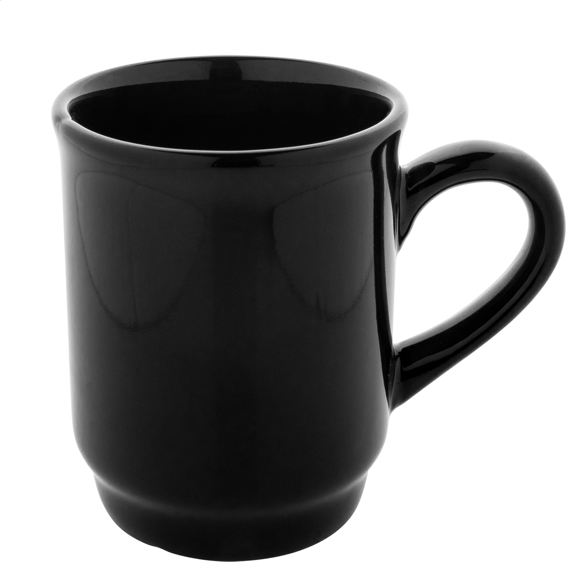 Stohovatelný keramický hrnek s barevným lesklým povrchem, 220 ml. V krabičce z kraftového papíru. Ideální pro servírování svařeného vína na akcích nebo trzích.