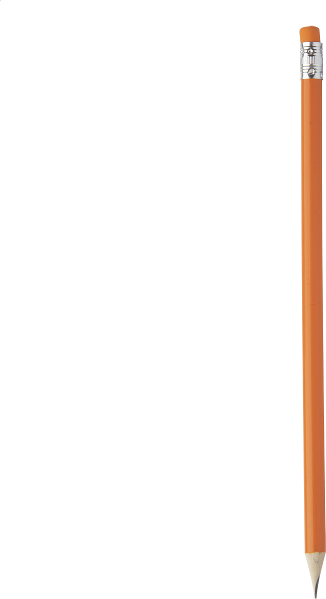 Dřevěná tužka se stejně barevnou gumou, ořezaná.