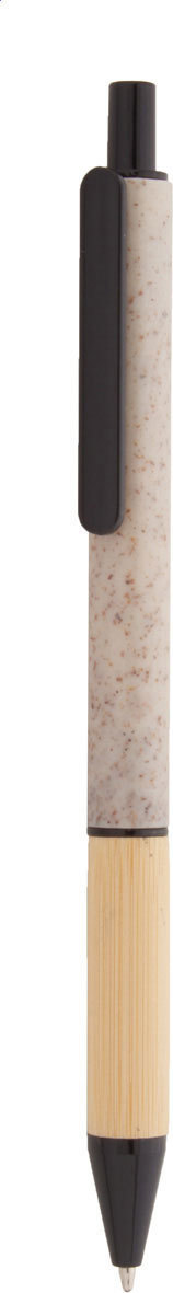 Ekologické plastové kuličkové pero z pšeničné slámy s bambusovým úchopem a barevnými částmi. S modrou náplní.