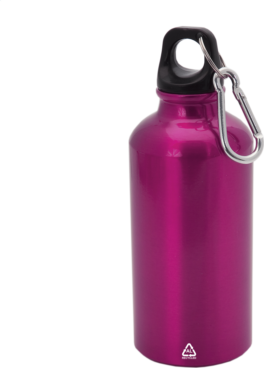 Láhev z recyklovaného hliníku s karabinkou z recyklovaného hliníku, 400 ml.
