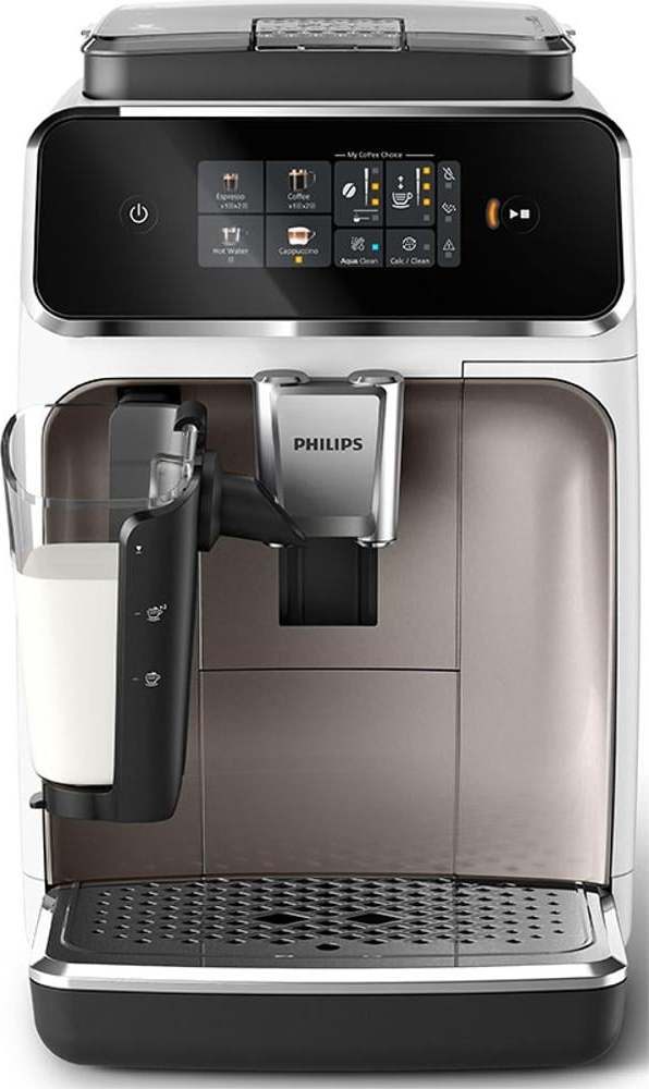 Šálek kávy chutnající jako z vaší oblíbené kavárny připravíte stisknutím jediného tlačítka v pohodlí vašeho domova. Automatický kávovar Philips LatteGo nabízí rychlou přípravu 4 lahodných nápojů včetně silného Espressa nebo Cappuccina s vrstvou hedvábně hebké mléčné pěny. Mléčný systém přístroje díky unikátní konstrukci vyčistíte za méně než 10 vteřin.* V mobilní aplikaci Coffee+ najdete inspirativní recepty na další úžasně chutnající nápoje. Systém LatteGo šlehá i rostlinné mléko.4 druhy nápojů včetně cappuccina jedním stisknutím tlačítkatypy na další kávové nápoje v aplikaci Coffee+, Silent Brewmožnost mleté kávymožnost přípravy 2 šálků kávy současněmožnost horké vodyintuitivní dotykový displej s barevnými ikonami100% keramické mlýnky12 stupňů nastavení hrubosti mletí kávy3 stupně volby intenzity kávy3 stupně volby teploty vodynastavitelná velikost šálku do 150mmsametově jemná mléčná pěna díky inovativnímu napěňovači mléka LatteGo s jednoduchou a rychlou údržbou a to i z rostlinného mlékanapěňovač mléka lze mýt i v myčceaž 5000 šálků kávy bez odvápňování díky filtru AquaCleanaroma těsněníodnímatelná spařovací jednotka a nádržka na vodubarva: bílá/chrom