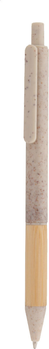 Ekologické plastové kuličkové pero z pšeničné slámy s bambusovým úchopem a barevnými částmi. S modrou náplní.