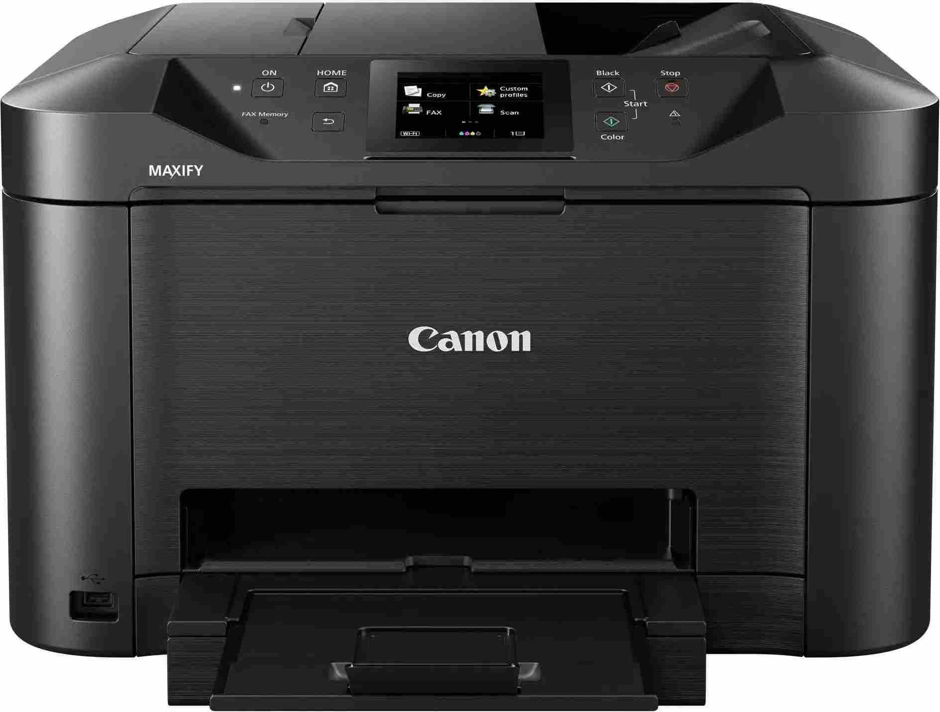 Po registraci na webu Canon (https://www.canon.cz/kancelarske-tiskarny-skenery-propagacni-akce/) máte tříletou záruku ZDARMA! Změna podporovaných modelů vyhrazena. Detailní info na stránkách akce.Tato výkonná multifunkční barevná inkoustová tiskárna, skener, kopírka a fax podporuje mobilní zařízení a cloudové služby a nabízí tisk rychlostí 24 obr./min černobíle a snadnou integraci do sítě.Výhody:*Vysoká produktivita: 24 obr./min černobíle, 15,5 obr./min barevně*Bezdrátový tisk ze smartphonů a tabletů*Připojení ke cloudu: skenování do cloudu nebo e-mailu*Vysoká výtěžnost inkoustů: 2 500 stran černobíle / 1 500 stran barevně*Vysoká kapacita 250 listů a duplexní automatický podavač dokumentů na 50 listůTiskárna:Rychlost tisku : 24,0 obr./min černobíle A4; 15,5 obr./min barevně A4Doba do výstupu první strany: Černobíle: 6 s (připraveno) / 10 s (režim spánku); Barevně: 7 s (připraveno) / 12 s (režim spánku)Technologie tisku: Inkoustová technologie, tisková hlava FINEMaximální rozlišení tisku: 600 × 1 200 dpiOkraje tisku (minimální): Horní: 3 mm, dolní: 5 mm, levý a pravý: 3,4 mmOboustranný tisk: Automatický (běžný papír A4, Letter)Skenování:Typ skeneru: Plochý, automatický podavač dokumentůTechnologie skeneru: 2× barevný skener CISRozlišení skeneru (optické): Až 1 200 × 1 200 dpiOboustranné skenování: K dispozici (jednoprůchodové)Rychlost skenování (podavač ADF) přibl.: Oboustranně 23 obr./min barevně; Oboustranně 23 obr./min černobíleMaximální velikost dokumentu: Sklo skeneru: A4, Letter (216 × 297 mm)Automatický podavač dokumentů: A4, Letter, LegalHloubka skenování (Vstup / výstup): Barevně: 48 bitů / 24 bitů; Stupně šedé: 16 bitů / 8 bitůSkenovací funkce: Skenování do e-mailu, skenování do síťové složky, skenování do cloudu, skenování na zařízení USBKopírování:Rychlost kopírování (přibližně): Barevně, z podavače ADF: 11,5 obr./min; Černobíle, z podavače ADF: 22,0 obr./minVícenásobné kopírování: Až 99 stranZmenšení / zvětšení: 25 až 400 %, přizpůsobení velikosti stránkyNastavení kvality kopírování: Standardní, vysokáFunkce kopírování: Vymazání rámečku, kompletování, 2 na 1, 4 na 1FAX:Typ faxu: Super G3 / barevnýRozlišení faxu: Černobílý režim: až 300 × 300 dpi; Barevný režim: 200 x 200 dpiRychlost faxování: Černobílý režim: přibl. 3 s (33,6 kb/s); Barevný režim: přibl. 1 min (33,6 kb/s)Paměť faxu: Až 250 stranKódovaná rychlá volba: Max. 100 místSkupinová volba: Max. 99 místInkousty a výtěžnostTyp inkoustu: Inkoust DRHD (Dual Resistant High Density); 4 zásobníky inkoustu (černý, azurový, purpurový, žlutý)Inkousty XL:PGI-2500XL BK (2 500 stran)PGI-2500XL C (1 755 stran)PGI-2500XL M (1 295 stran)PGI-2500XL Y (1 520 stran)Průměrná výtěžnost barevných (CMY) zásobníků inkoustu: 1 500 stranPřipojení:Kabelová připojení: USB 2.0 Hi-speed; Ethernet 10/100 Mb/s (automatické přepínání); Port pro paměťové zařízení USB flash (typu „A“)Bezdrátová připojení: Wi-Fi IEEE802.11 b/g/n; Frekvenční pásmo bezdrátové sítě LAN: 2,4 GHz; Režim přístupového boduPodpora aplikací:Aplikace Canon PRINT Inkjet/SELPHYMAXIFY Cloud Link (z displeje tiskárny nebo chytrého řízení)Modul plug-in Canon Print Service (Android)MopriaMicrosoft Mobile PrintApple AirPrintGoogle Cloud PrintSpotřeba:Pohotovostní režim (skenovací lampa vypnuta)Připojení k počítači pomocí rozhraní USB: přibl. 0,9 WVypnuto: přibl. 0,2 WKopírování (připojení k počítači přes rozhraní USB): přibl. 25 WRozměry a hmotnost:Rozměry (Š × H × V):463 × 394 × 291 mm463 × 459 × 291 mm (po vložení papíru)Hmotnost: 11,4 kgZárukaZákazník může přes registrační formulář na odkaze www.canon.cz/promozaruka či www.canon.sk/promozaruka uplatnit svůj nárok na 3letou záruku.Související dokumentyDatasheet