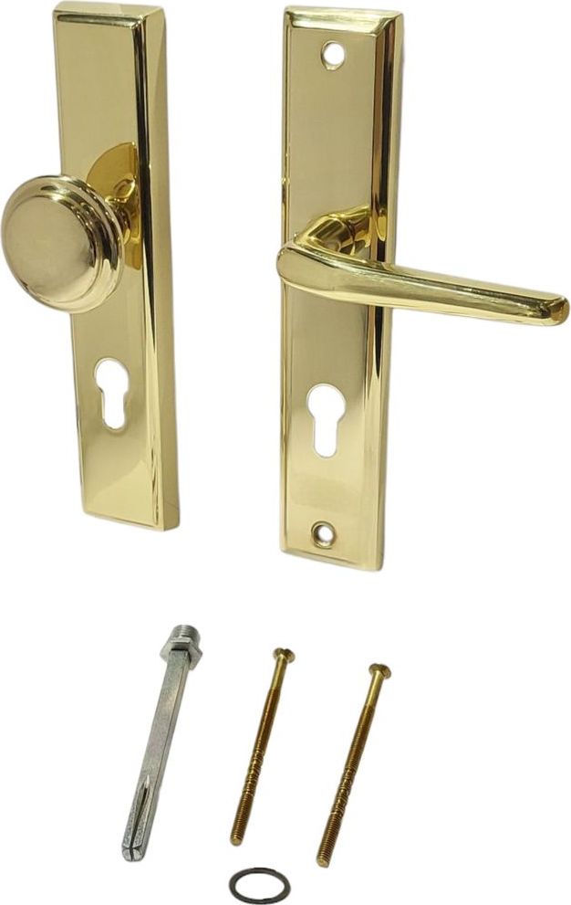 Kování Aramis PZ je elegantní dveřní kování určené pro vchodové nebo interiérové dveře s cylindrickým zámkem (profilová vložka PZ). Souprava obsahuje vnější kování s kulatou úchytkou a vnitřní kování s dlouhou páčkou, přičemž obě části jsou osazeny na reprezentativních štítkových rozetách s charakteristickým geometrickým designem. Kování se vyznačuje pevnou a trvanlivou konstrukcí , která zaručuje spolehlivé používání po dlouhá léta. Štítky jsou vybaveny otvorem pro cylindrickou vložku typu PZ, což umožňuje snadnou instalaci standardních bezpečnostních vložek dostupných na trhu. Design kování kombinuje klasické proporce s čistými liniemi, díky čemuž se hodí do moderních i tradičních interiérů. Mezi hlavní vlastnosti patří: Kombinovaná sada – vnější strana s kulatým úchytem, vnitřní strana s páčkovou rukojetí Štítkové rozety s otvorem pro profilovou cylindrickou vložku (PZ) Montážní příslušenství je součástí dodávky – šrouby a spojovací čep pro snadnou instalaci Vhodné pro standardní rozteč osy zámku 72 mm Elegantní leštěný povrch s vysokým leskem pro reprezentativní vzhled Instalace je jednoduchá a zvládne ji každý zručnější kutil – vše potřebné najdete přímo v balení. Kování Aramis PZ je ideální volbou pro každého, kdo hledá spolehlivé a estetické řešení pro své dveře.