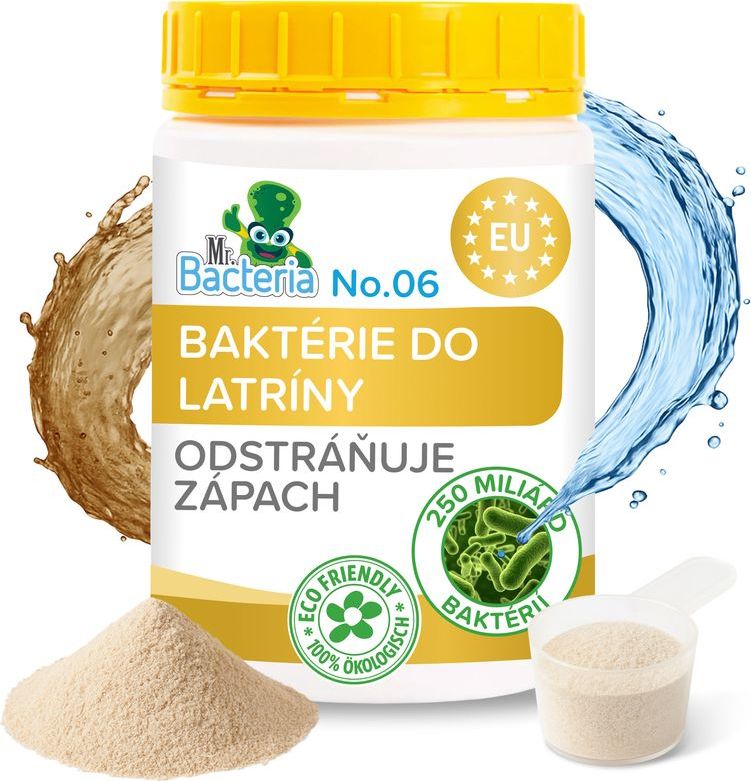 Mr.Bacteria No.6 je biologický aktivátor určený k údržbě latrín a suchých WC , který obsahuje pouze volně se v přírodě vyskytující bakterie a enzymy. Přípravek nastartuje biodegradační procesy, čímž zabraňuje tvorbě usazenin a kalů a optimalizuje bakteriální účinnost v odpadních systémech. Díky svému působení dochází k úplnému rozložení suchých a tuhých exkrementů , které se mohou hromadit i několik let, přičemž se zastavuje jejich opětovné usazování . Jedním z hlavních přínosů je výrazné snížení až úplné odstranění nepříjemného zápachu.