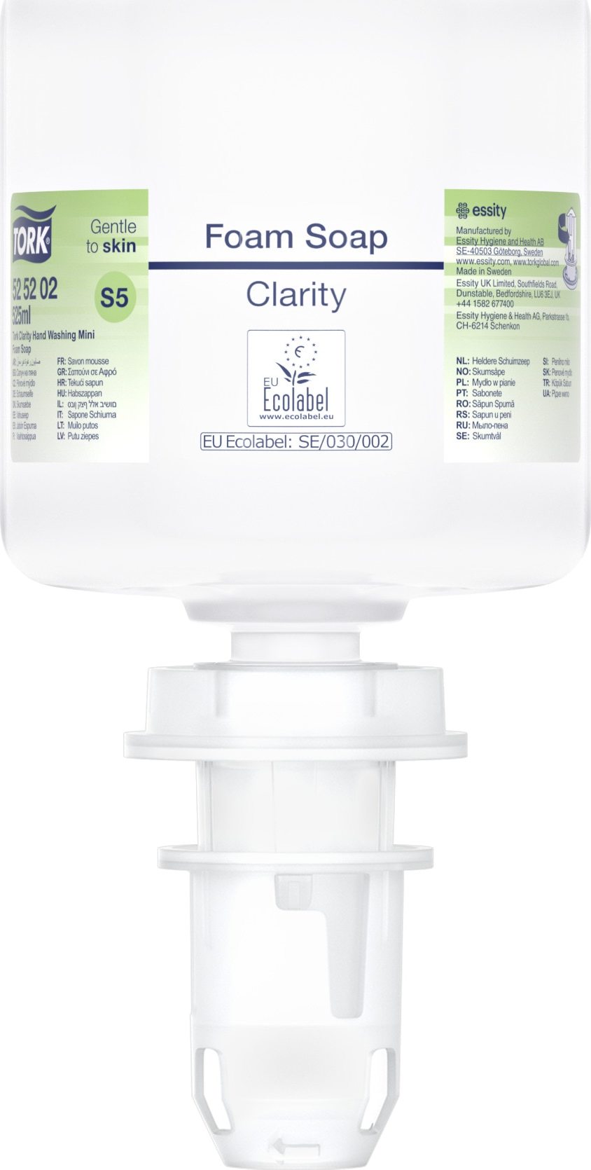 Tork čiré pěnové mýdlo vyrobeno z omezeného počtu ingrediencí, z nichž je 99 % přírodního původu. Jednorázová patrona o obsahu 525ml.