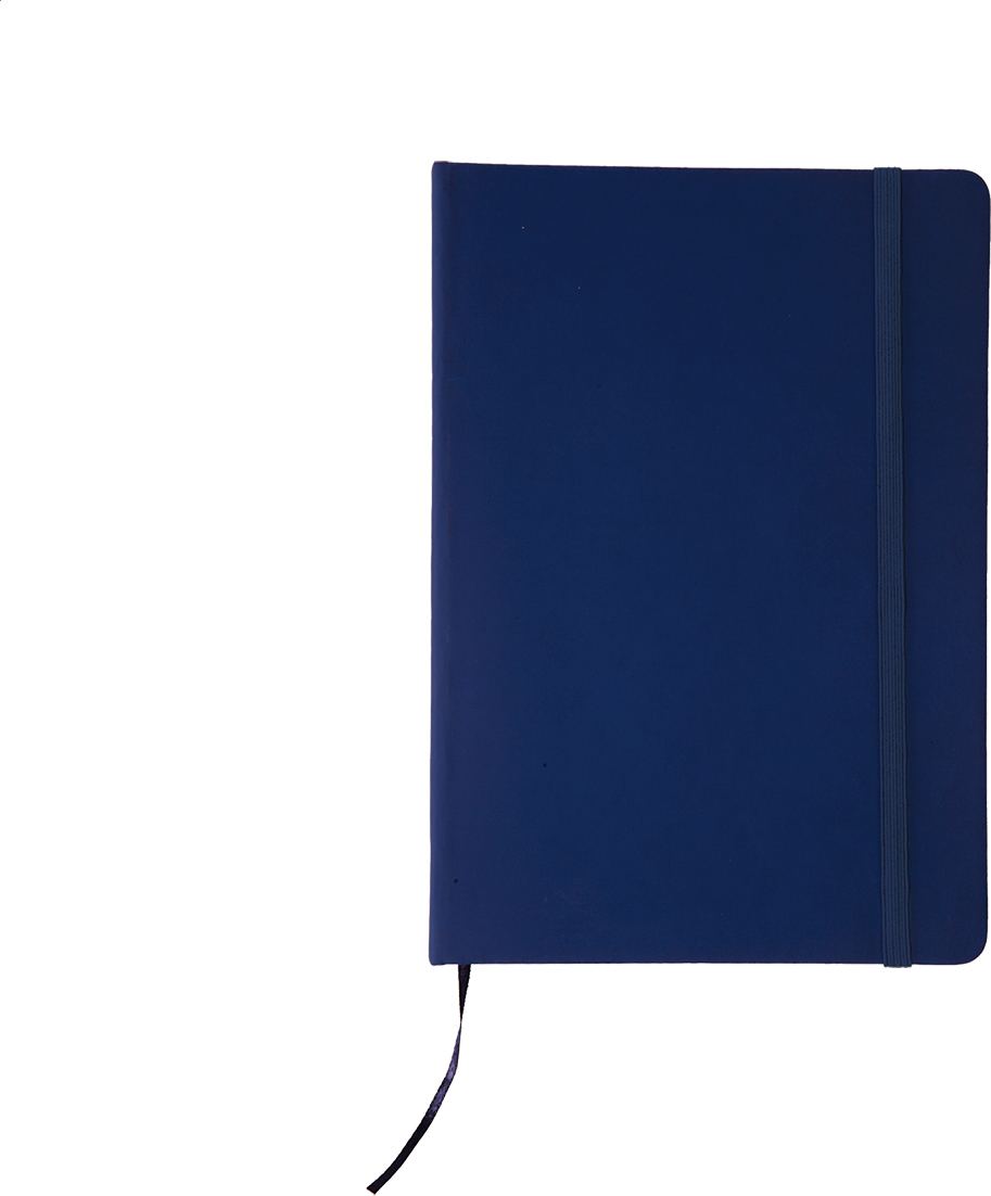 Poznámkový blok se 100 listy, záložkou a gumičkou.