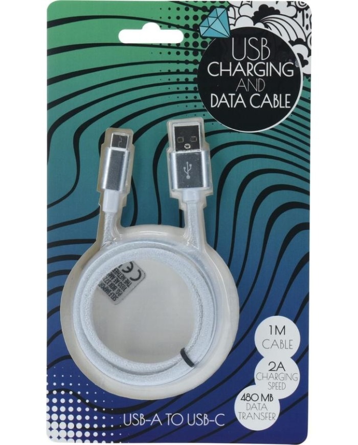 Kabel USB-A na USB-C, 1 m, 2A, bíly