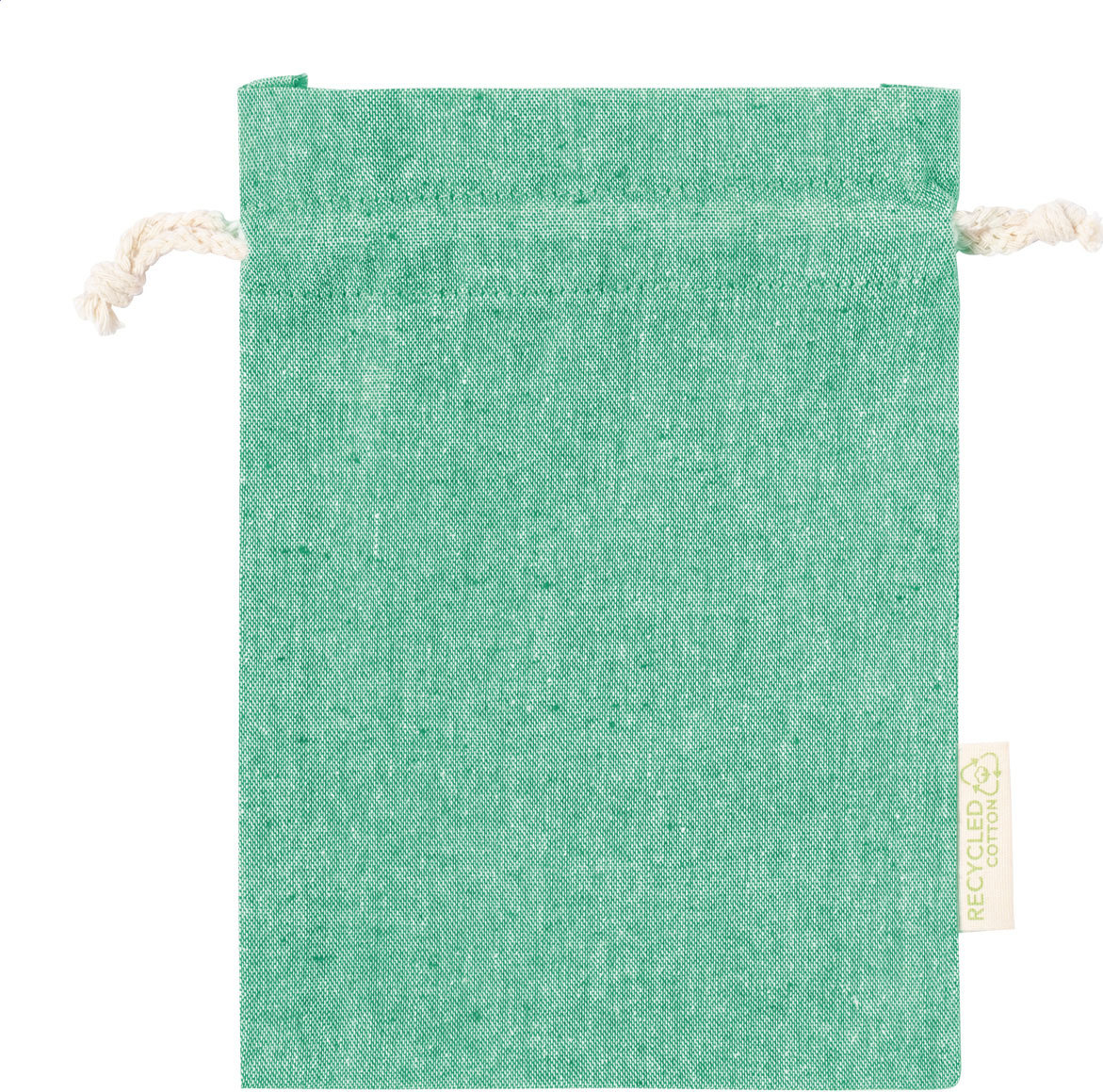 Opakovaně použitelný pytlík na potraviny z recyklované bavlny se stahování na šňůrku. 100% recyklovaná bavlna, 120 g/m².