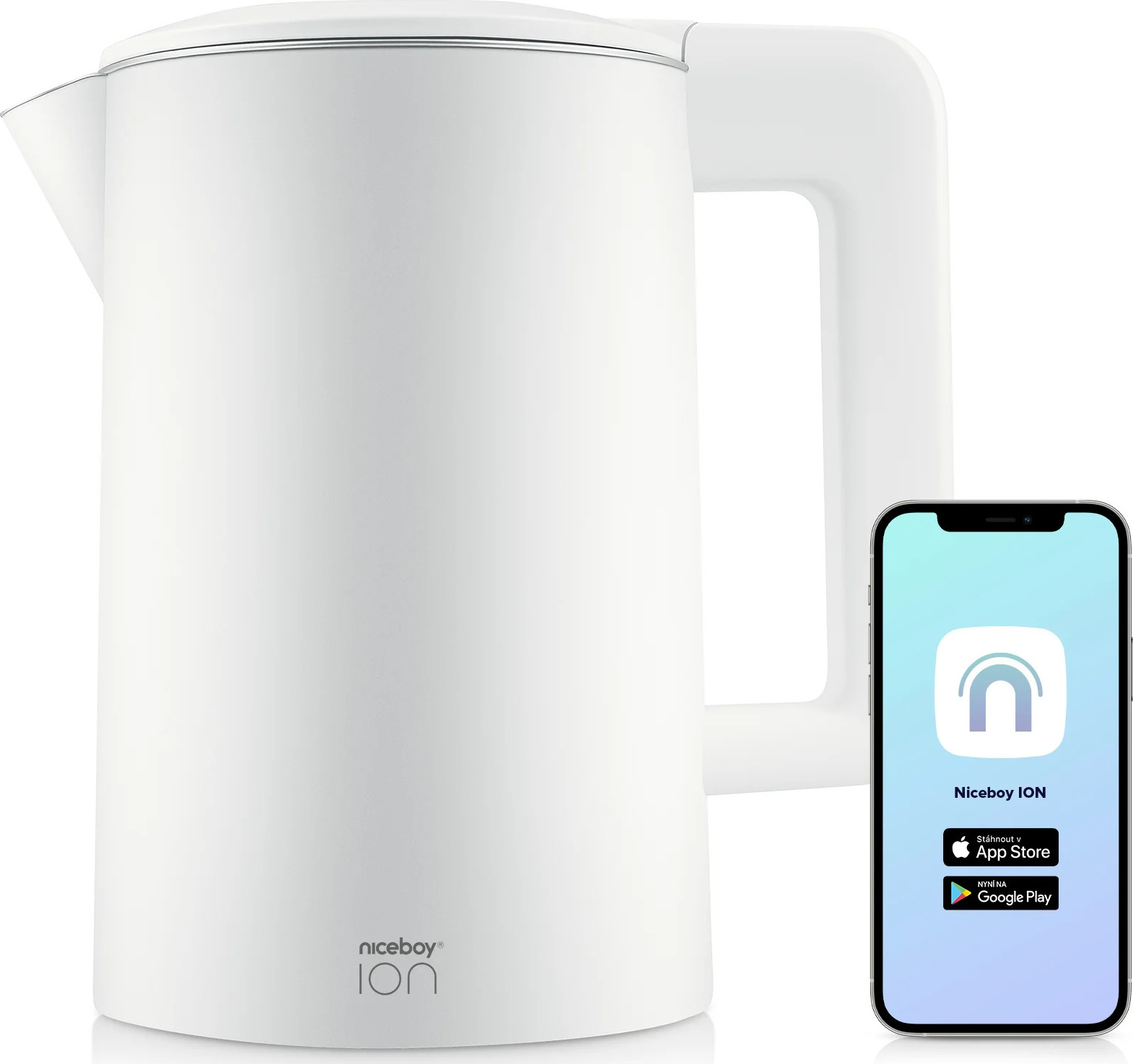 Niceboy ION SmartKettleChytrá konvice pro vaše krásné ránoChytrá rychlovarná konvice Niceboy ION SmartKettle v bílém nerezovém provedení se bude díky svému designu vyjímat nejen v klasické kuchyni, ale i v moderním interiéru. Má 5 teplotních režimů, dokáže tedy vodu zahřát přímo na 5 různých teplot nebo vodu přivést k varu a pak udržovat v požadované teplotě, až po 6 hodin. Příkon 1850 W umožňuje velmi rychlé ohřátí až 1,7 litru vody. Díky propojení s aplikací je možné ovládání na dálku nebo nastavení pravidelného spuštění chodu podle vašich potřeb.Ohřejte si vodu na dálku s mobilní aplikacíUžijte si ráno ještě pár minut v posteli navíc! Jak? S ovládáním přes mobilní aplikaci si chytrou konvici Niceboy ION SmartKettle můžete na dálku zapnout a ohřát vodu na teplotu, jakou si přejete. Nebo si svůj každodenní rituál můžete zautomatizovat: v aplikaci si nastavíte, aby konvice začala vařit vodu v určitý čas nebo se zapla současně s budíkem.Přednastavené teploty pro horký čaj i kaši pro miminkoPoužívání chytré konvice Niceboy ION SmartKettle nemůže být jednodušší a uspokojí milovníky horké kávy, zeleného čaje i rodiče malých dětí. Stačí nastavit si jednu z pěti nabízených teplot v rozmezí 40 až 100 °C a zmáčknout tlačítko. Vodu si můžete na požadovanou teplotu jednoduše ohřát, nebo ji převařit při 100 stupních a pak nechat zchladnout třeba na 40 °C.Udržení teploty na 6 hodinNastavenou teplotu vody konvice dokáže udržet až 6 hodin, takže si kávu můžete vychutnat až budete mít chvilku.Otočná základnaS 360° otočnou základnou můžete konvici na základnu postavit z jakéhokoliv úhlu.Skrytá topná spirálaTopná spirála je skrytá pod topným dnem z kvalitní nerezové oceli. Je tak omezen vznik vodního kamene a konvice se snadno čistí.Dvě pojistky pro váš pocit bezpečíChytrá konvice Niceboy ION SmartKettle je bezpečný domácí spotřebič, vybavený hned dvěma pojistkami. Díky té první se konvice hned vypne, jakmile se voda uvaří, není třeba ji hlídat. Druhou šikovnou pojistkou je ochrana proti varu naprázdno. Když tedy ráno ve spěchu vyrazíte ven, nemusíte se v obavách o bezpečí vracet - na chytrou konvici Niceboy ION SmartKettle je zkrátka spolehnutí. Kvalitní materiály pro výdrž a bezpečnou manipulaciVnitřní část konvice je vyrobena kompletně z kvalitní nerezové oceli 304. Tento materiál se vyznačuje vysokou odolností proti korozi a zápachu, snadným čištěním a celkově vysokou životností. Navíc je konvice ION SmartKettle vybavena dvouplášťovým povrchem, který zajistí, že je povrch konvice vždy bezpečný na dotyk, ať už je teplota vody v konvici jakákoliv.Káva pro velkou návštěvu? Během chvilky!Varná konvice Niceboy ION SmartKettle má vysoký příkon 1850 wattů. To je opravdu dost na to, aby dokázala uvařit plnou kapacitu (1,7 litru) v rekordním čase. Během chvíle tak máte připraveno až osm šálků čaje či kávy.Obsah balení Chytrá konvice Niceboy ION SmartKettle Napájecí podstavec Návod k použitíParametry Model: SmartKettle Naměřené napětí: 220-240 V~ Frekvence: 50-60 Hz Naměřený výkon: 1850-2200 W Kapacita: 1.7 l