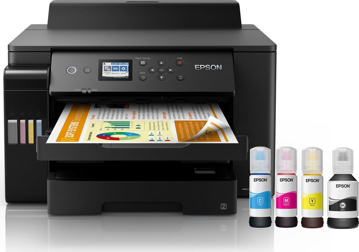 Získejte bezplatnou prodlouženou záruku po online registraci: https://www.epson.cz/cs_CZ/promotions/extended-warrantyTisk do formátu A3+ s touto rychlou a funkcemi bohatě vybavenou tiskárnou EcoTank pro firmy. Nabízí nízké náklady na stránku s minimální nutností vašich zásahů, takže vám šetří čas i peníze.Tato tiskárna EcoTank s množstvím funkcí je určena uživatelům v menších kancelářích a firmách, usnadňuje tiskové úlohy do formátu A3+ a nabízí nízké náklady na stránku. Tiskové úlohy do formátu A3+ lze zvládnout rychle díky vysokým rychlostem tisku, dvěma předním zásobníkům na 250 listů A3 a zadnímu podavači o kapacitě 50 listů A3. Díky funkcím mobilního tisku, Ethernet připojení a dotykovému LCD displeji s úhlopříčkou 6,1 cm můžete tisknout tak, jak právě potřebujete.* Tisková hlava PrecisionCore™* Home Office, Pracovní skupina* LCD displej: Typ: Barevně, Úhlopříčka: 6,1 cmFormát tiskárny: A3+Rozlišení[DPI]: 4.800 x 1.200 dpiRychlost tisku ISO/IEC 24734: 25 Str./min Černobíle, 25 Str./min ColourRychlost tisku: 32 Str./min Černobíle (obyčejný papír), 32 Str./min Colour (obyčejný papír)Rychlost oboustranného tisku ISO/IEC 24734: 21 A4 str./min. Černobíle, 21 A4 str./min. ColourTisk první strany [sec.]: Černobíle 5,5 s, Colour 5,5 sOboustranný tisk: Ano (A4/A3, obyčejný papír)Zpracování médií: Automatický oboustranný tisk (A4/A3, obyčejný papír), Tisk bez okrajůKapacita zásobníku [str.]: Kapacita výstupního zásobníku: 125 ListůKapacita zásobníku papíru: 550 Listů StandardníRozhraní: USB, Ethernet, Wi-Fi, Wi-Fi DirectSkener: neFax: neSpotřeba [W]: 0,8 W (úsporný režim), 27 W (tisk), 7,1 W Připraveno, 0,2 W (vypnutí), TEC 0,14 kWh/weekRozměry: 515 x 500 x 300 mm (šířka x hloubka x výška)Hmotnost [kg]: 17 kgPodporované operační systémy: Mac OS X 10.6.8 or later, Windows 10 (32/64 bit), Windows 7 (32/64 bit), Windows 8 (32/64bitová verze), Windows 8.1 (32/64 bit), Windows Server 2008 R2, Windows Server 2012 R2, Windows Server 2016, Windows Vista (32/64bitová verze), Windows XP Professional x64 Edition SP2 or later, Windows XP SP3 or later (32-bit), Windows Server 2003 R2, spectextoptionoperatingsystemswin2003ii2Obsah balení: 1 sada inkoustu (1 × 127 ml BK, 3 × 70 ml CMY), Hlavní zařízení, napájecí kabel, Úvodní příručka