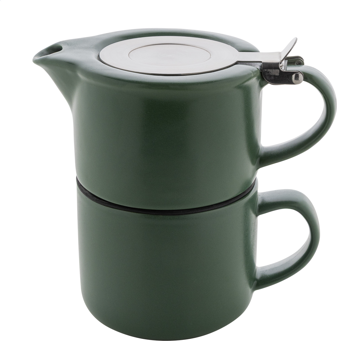 Vysoce kvalitní keramická čajová sada s matným povrchem. Včetně konvice na čaj (430 ml) s víčkem z nerezové oceli a sítkem na čaj, navržená pro úhledné stohování na odpovídající hrnek (400 ml). V krabičce z kraftového papíru.
