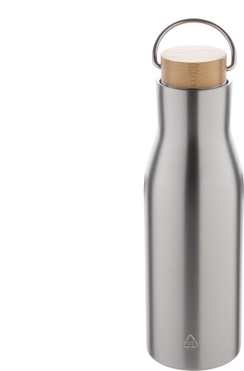 Dvoustěnná nerezová termoska z recyklované nerezové oceli s bambusovým víkem, 500 ml.