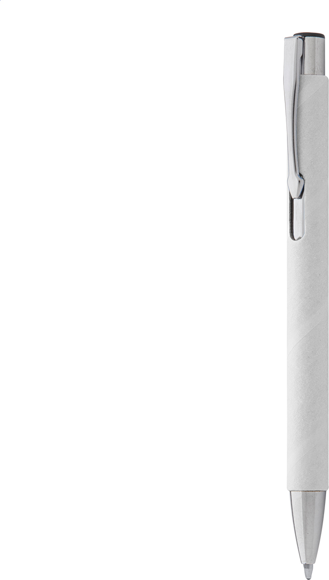 Kuličkové pero z recyklovaného papíru s kovovými částmi. S modrou náplní.