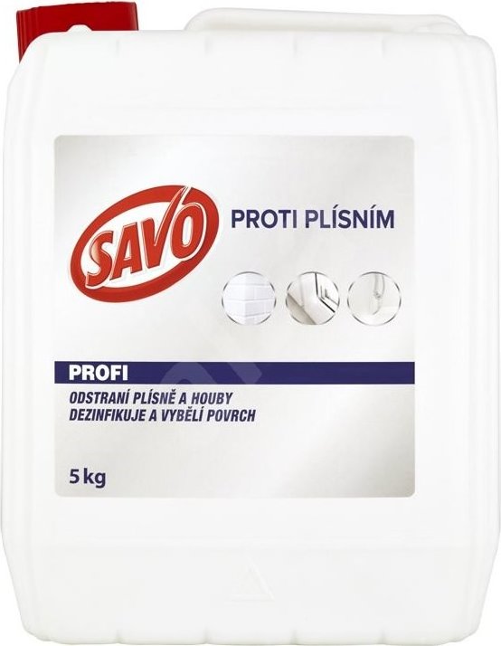 Jednička na trhu v odstraňování plísní, řas a kvasinek. SAVO Proti plísním jednoduše, velmi účinně a s okamžitým viditelným efektem odstraňuje veškeré plísně v domácnosti. Navíc má Savo Proti plísním dezinfekční účinek. SAVO Proti plísním je vhodný k použití na dlaždice, plasty, omítky, malby zdí i dřevo v interiéru a exteriéru. Popis výrobku: SAVO Proti plísním výborně účinkuje proti vegetativním formám plísní, kvasinkám, řasám a má dezinfekční účinek. Je dodáván v mechanickém rozprašovači, který zajišťuje snadnou manipulaci a usnadňuje likvidaci plísní i na obtížně přístupných místech. Vlastnosti: Nejprodávanější prostředek na trhu Účinně odstraní plísně, řasy, kvasinky v celé domácnosti Okamžitý účinek s viditelnými výsledky S dezinfekčními a bělícími účinky Oblast použití: Používá se pro sanaci plísňových napadení dřeva, stěn, omítek, maleb v interiérech i exteriérech. Odstraní plíseň i z rámů oken. SAVO Proti plísním najde využití v prostorách se zvýšenou vlhkostí a náchylností ke vzniku plísní. Např. v prádelnách, lázních, saunách, bazénech, v komunální hygieně, skladech potravin. Aplikace: Na postižená místa aplikujte neředěné SAVO Proti plísním přímo postřikem ve vzdálenosti 5-10 cm, po 20 minutách ošetřené místo omyjte vodou nebo nechte zaschnout. Před aplikací plíseň neodstraňujte! Mohlo by dojít k rozptýlení výtrusů a rozšíření plísně na další místa. Při silném napadení postup opakujte. Má bělicí účinky. Orientační spotřeba je min. 50 ml/m2 omítky, zdiva či dřeva. Balení: 5 kg kanystr