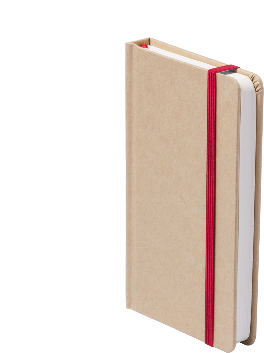Blok s deskami potaženými recyklovaným kartonem se 100 čistými listy, barevnou záložkou a gumičkou.