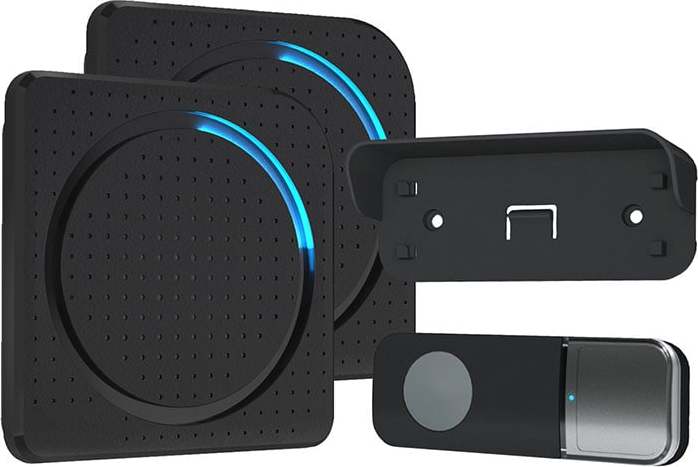 Sada zvonků pro větší pokrytíBezdrátové zvonky stačí zapojit do běžné zásuvky, není potřeba žádné vrtání ani tahání kabelů. Dosah až 200 metrů v otevřeném prostoru zaručuje bezproblémové fungování i ve větších domech, kancelářích nebo provozovnách. Oba přijímače jsou spárovány s tlačítkem a zvyšují pokrytí signálem, např. jeden v přízemí a druhý v patře domu, či ve vzdálenější místnosti. Vysílač je napájen baterií a snadno se upevní na zeď nebo dveře. Stříška vysílače zvyšuje odolnost proti dešti a zároveň chrání před přímým slunečním světlem, to prodlužuje jeho životnost.Funkce, na které se můžete spolehnoutZvonek nabízí výběr z 36 melodií a možnost nastavení 4 úrovní hlasitosti. Kódování „learning code“ umožňuje přidávat více zvonků nebo tlačítek do skupiny a eliminuje rušení jinými zvonky v okolí. Tato funkce je ideální pro bytové domy, kancelářské budovy i chatové oblasti.Moderní vzhled pro každý prostorČerné provedení s čistými liniemi působí nenápadně a elegantně zároveň. Zvonek decentně ladí s většinou interiérů a neruší celkový vzhled místnosti. Kombinuje moderní design s praktickým využitím v každodenním provozu.sada 2x přijímač, 1x tlačítkofunkce „Learning code“ umožňuje spárování více zvonků nebo tlačítek do jedné skupiny:k jednomu zvonku může být spárováno max. 15 tlačítekjedno tlačítko může být spárováno s max. 8 zvonky, na každém zvonku může být nastavena jiná melodie36 volitelných melodiíLED indikátor zvonění na zvonku i tlačítkutlačítko s krytem na jmenovku a se stříškou proti deštivodotěsná ochrana tlačítka IP56nastavení hlasitosti zvonku: 4 stupně 25 - 110dBuchycení tlačítka pomocí samolepící podložky nebo montážních otvorůbarva: černádosah signálu na otevřeném prostranství: 200mpřenosová frekvence: 433MHznapájení:tlačítko: 1 x 3V (CR2032) baterie (součástí balení)zvonek: AC 230V - do zásuvkyspotřeba energie: přijímač (zvonek) v klidovém režimu: <0,5Wvysílač (tlačítko) v pracovním režimu: <10mWpracovní teplota: tlačítko -20 °C až +60 °C, zvonek -10 °C až +45 °Cnáhradní tlačítko Solight č. 1L67TB