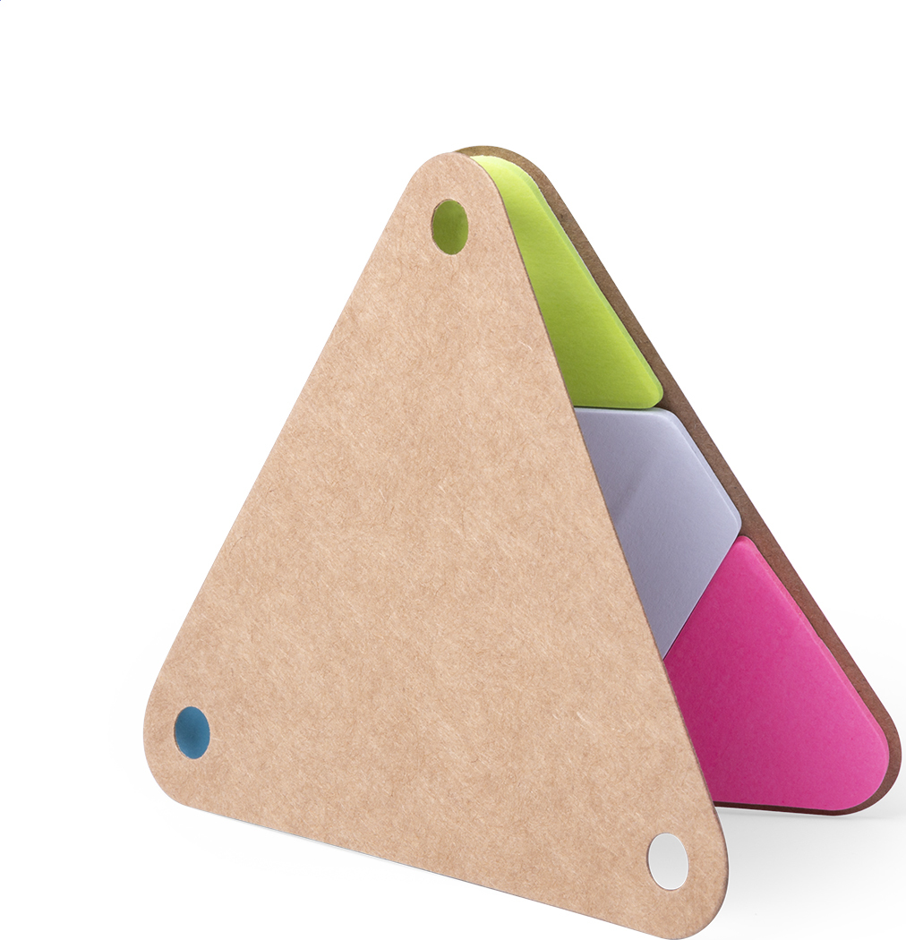 Trojúhelníkový bloček s deskami z recyklované lepenky se samolepícími lístky ve 2 velikostech.Vč. 20 ks trojhranných a 60 ks trojúhelníkových lístků.