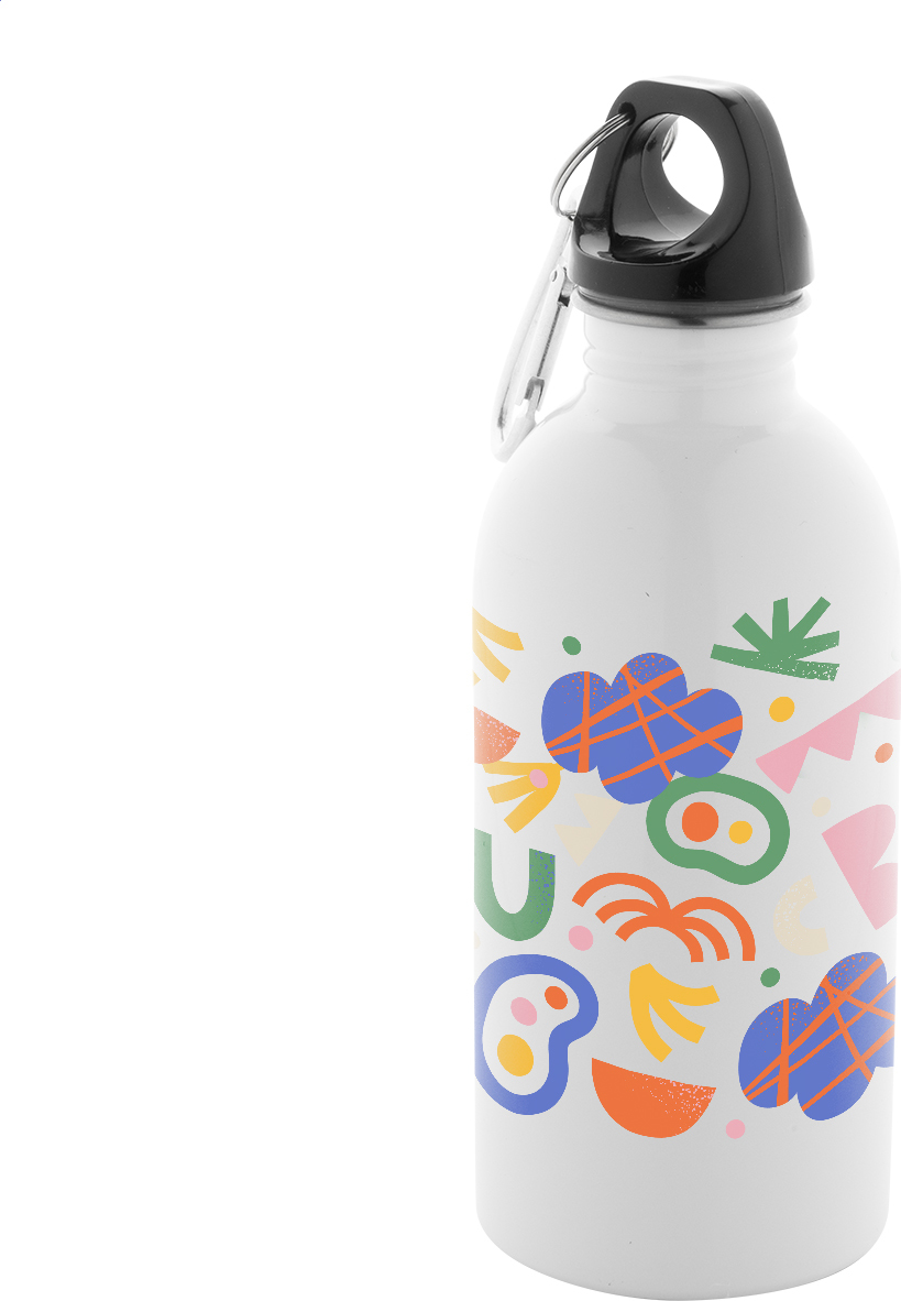 Láhev z recyklované nerezové oceli pro sublimační potisk s hliníkovou karabinou, 400 ml.