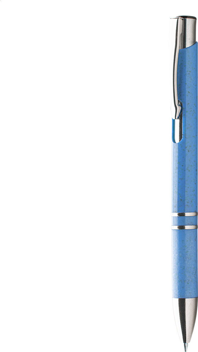 Kuličkové plastové pero z ekologických částí z pšeničných stébel, s modrou náplní.