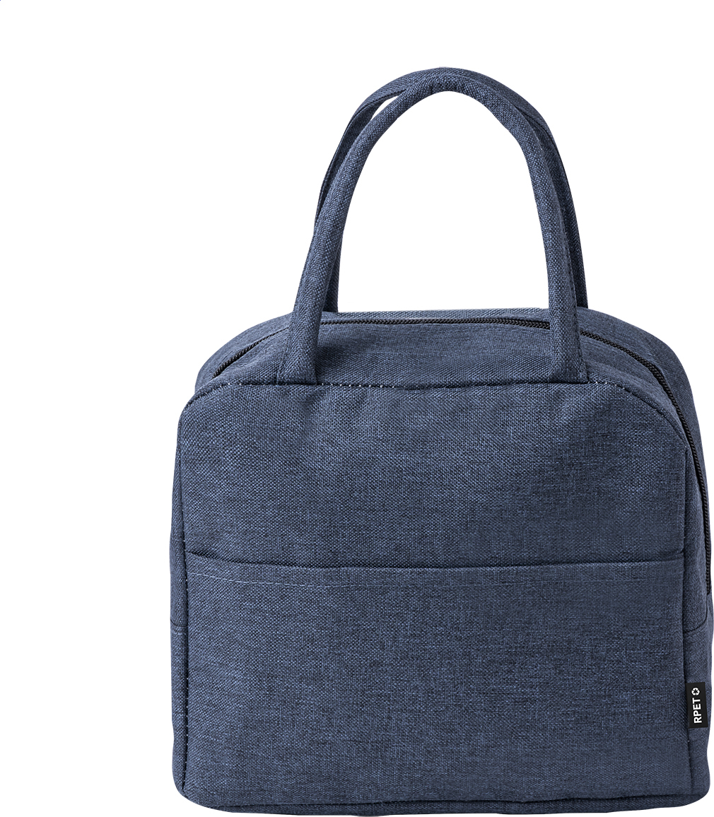 Chladicí taška RPET s přihrádkou na zip, hliníkovým polstrováním a uchy. Polyester 600D RPET, s výrazným štítkem RPET.